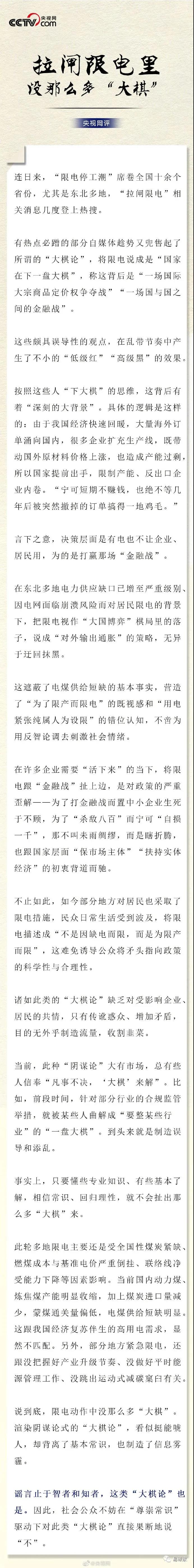 - 央視網評拉閘限電背后的大棋論:誰在限電,亂帶節奏! 2021-10-08